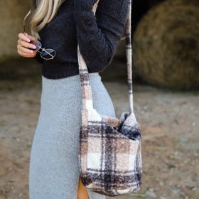 FINAL SALE – Composed Confidence Brown Checkered Crossbody Bag