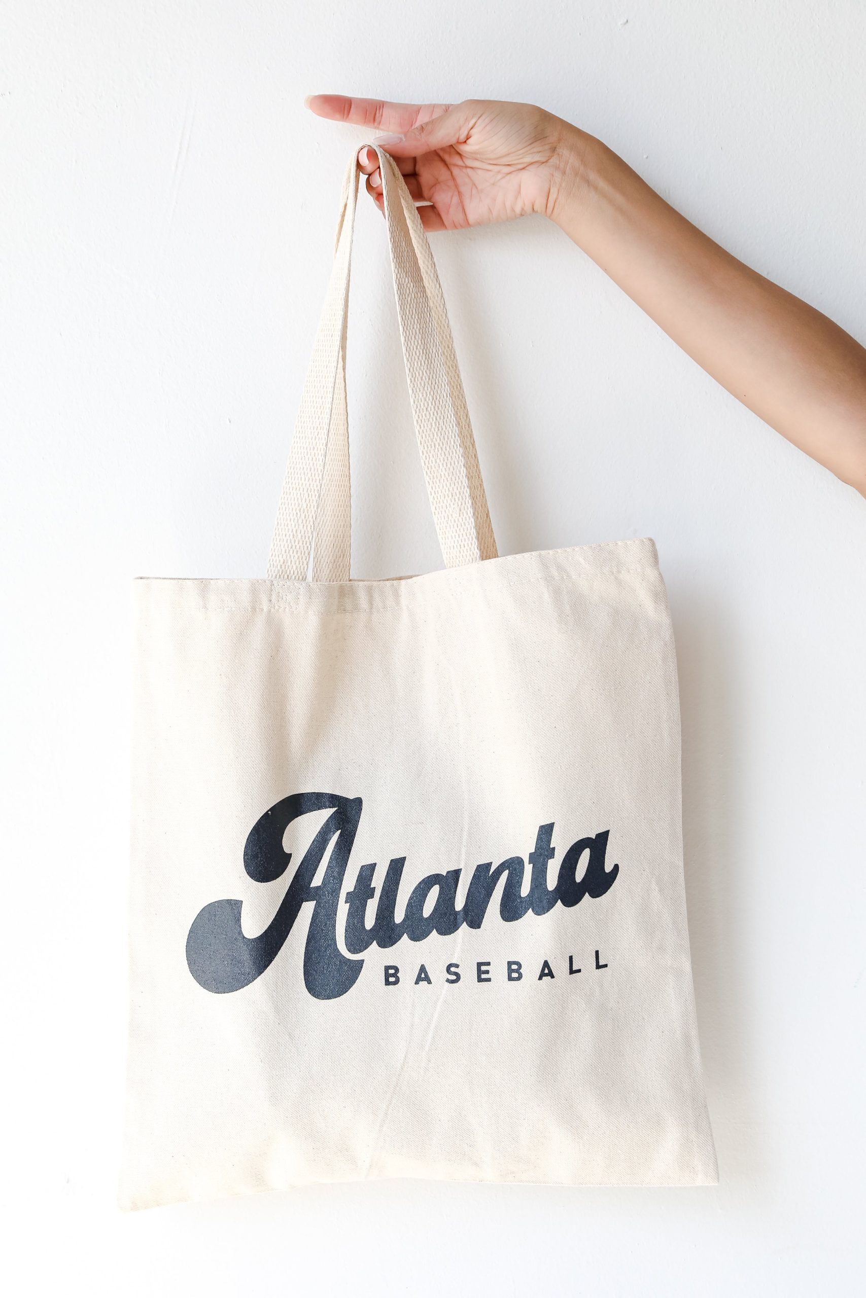 All DU Exclusive items are excluded from all coupons and promotionsCarry all of your essentials in the Atlanta Baseball Tote Bag! This cute canvas tote features double top handles for easy carrying and an open compartment that’s perfect for those on-the-go days. Canvas Material 100% CottonOne Size | Length 15.25″ | Width 14″ | Strap Lengths 10″